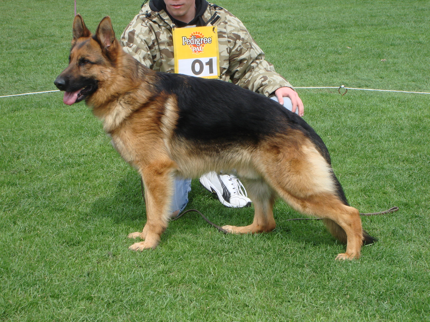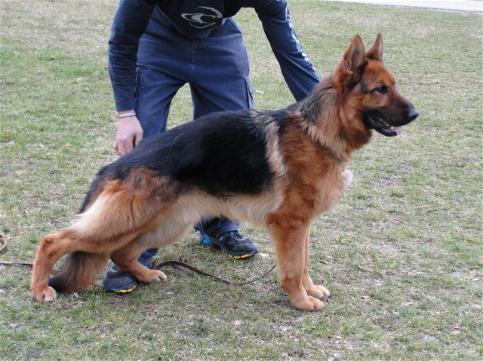 Groß, in sehr gutem Verhältnis aufgebaut, knochenkräftig, gehaltvoll, sehr gut pigmentiert. Ausdrucksvoller, kräftiger Kopf mit dunklem Auge. Hoher Widerrist, fester Rücken, gute Lage und Länge der Kruppe, gut gewinkelte Vor-, sehr gut gewinkelte Hinterhand, korrekte Front. Hinten gerade, vorne etwas eng tretend, bei kraftvollem Schub der Hinterhand sollte der Vortritt noch etwas freier sein. Sehr gute Gesamtfestigkeit. TSB ausgeprägt; lässt ab.