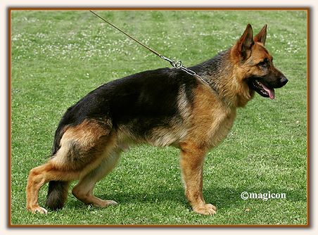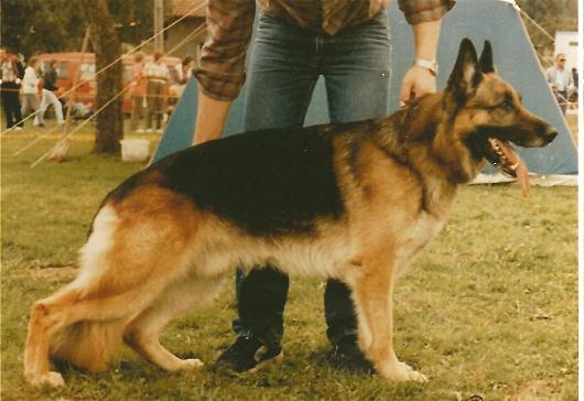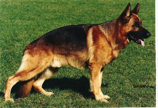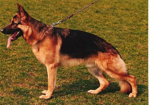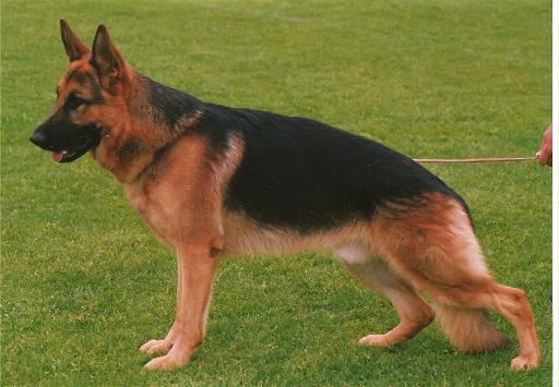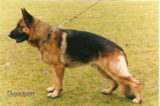 Groß, mittelkräftig, ausdrucksvoll, trocken und fest, korrektes Verhältnis, hoher Widerrist, fester Rücken, gute Kruppe. Gerade Front, sehr gute Winkelungen der Vor- u. Hinterhand, ausgeglichene Brustverhältnisse, vorn und hinten geradetretend, sehr kraftvolle Gänge.