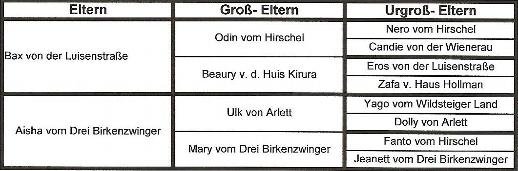 Vater: Bax von der Luisenstraße Mutter: Aisha vom Drei Birkenzwinger