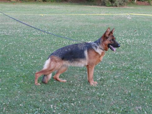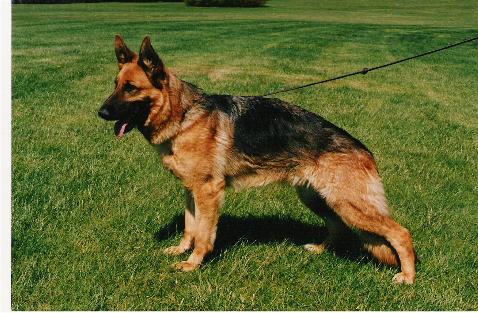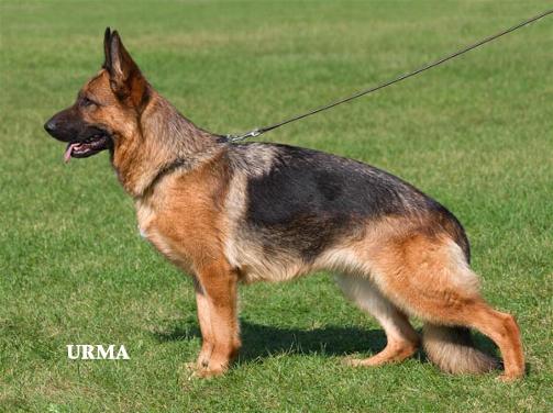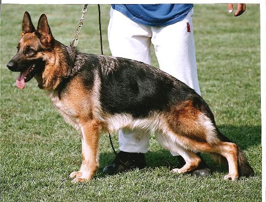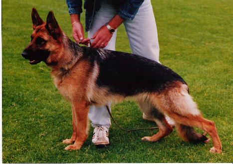 Groß, kraft- u. gehaltvoll, sehr typ- u. ausdrucksvoll, mit sehr gutem Pigment, trocken und fest, richtiges Gebäudeverhältnis. Typvoller Kopf, hoher Widerrist, fester Rücken, sehr gute Kruppenlage und länge und sehr gute Winkelungen. Korrekte Brustverhältnisse, gerade Front, bei korrekter Schrittfolge zeigt sie imponierende, kraftvolle, weit ausgreifende Gänge. Sicheres Wesen. TSB ausgeprägt; läßt ab.