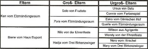 Vater: Ken vom Elzmündungsraum Mutter: Biene vom Haus Dupont