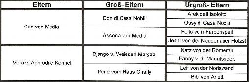 Vater: Cup von Media Mutter: Vera v. Aphrodite Kennel